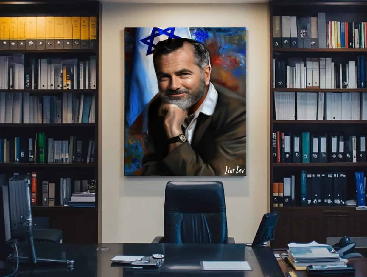 הדפס מקורי על קנבס עם דיוקן מהמם של הרב כהנא עם דגל ישראל ברקע.